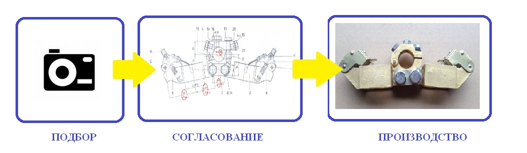 Существуют типовые чертежи щеткодержателей, которые мы направим вам для определения параметров заказа.